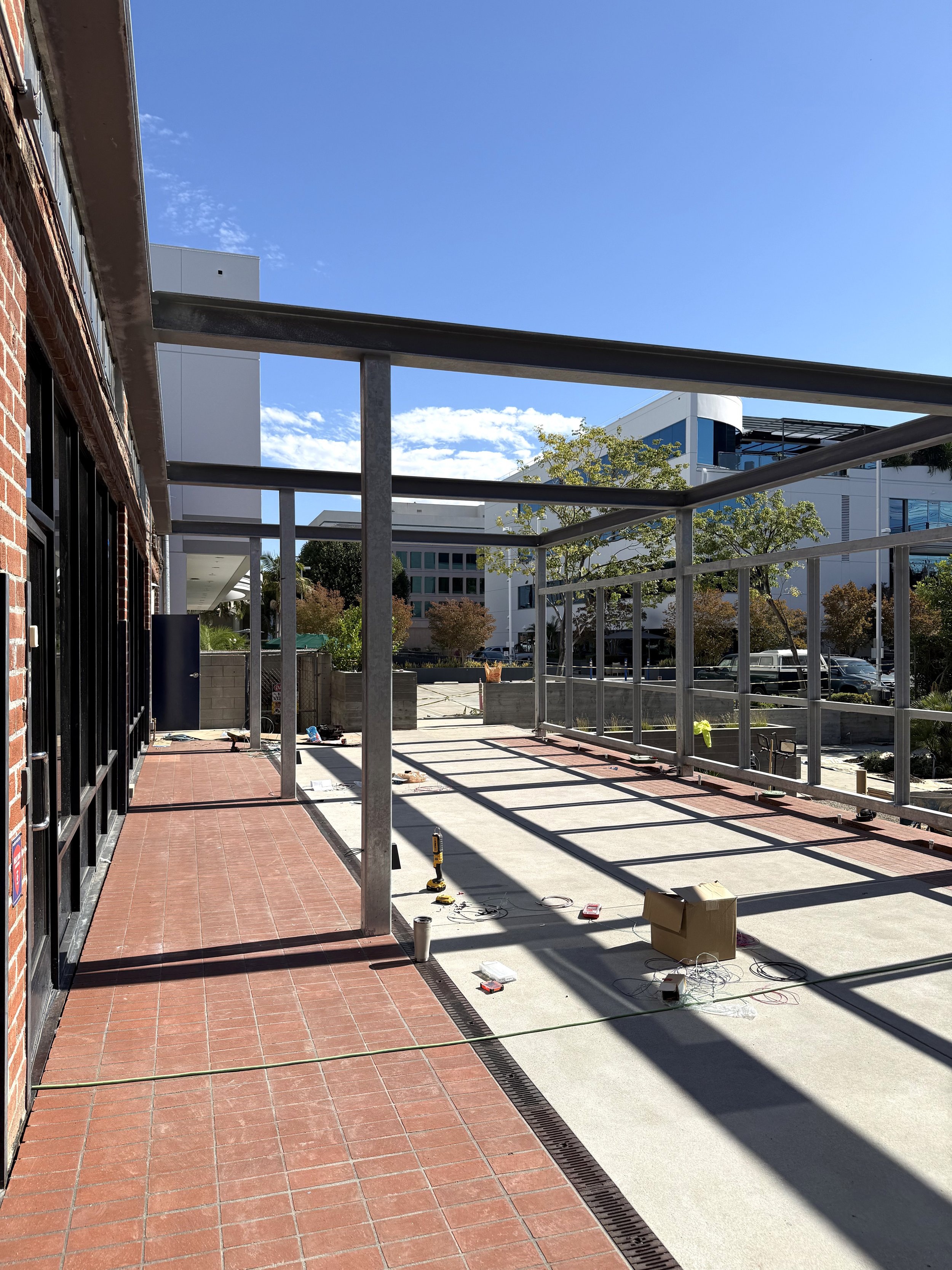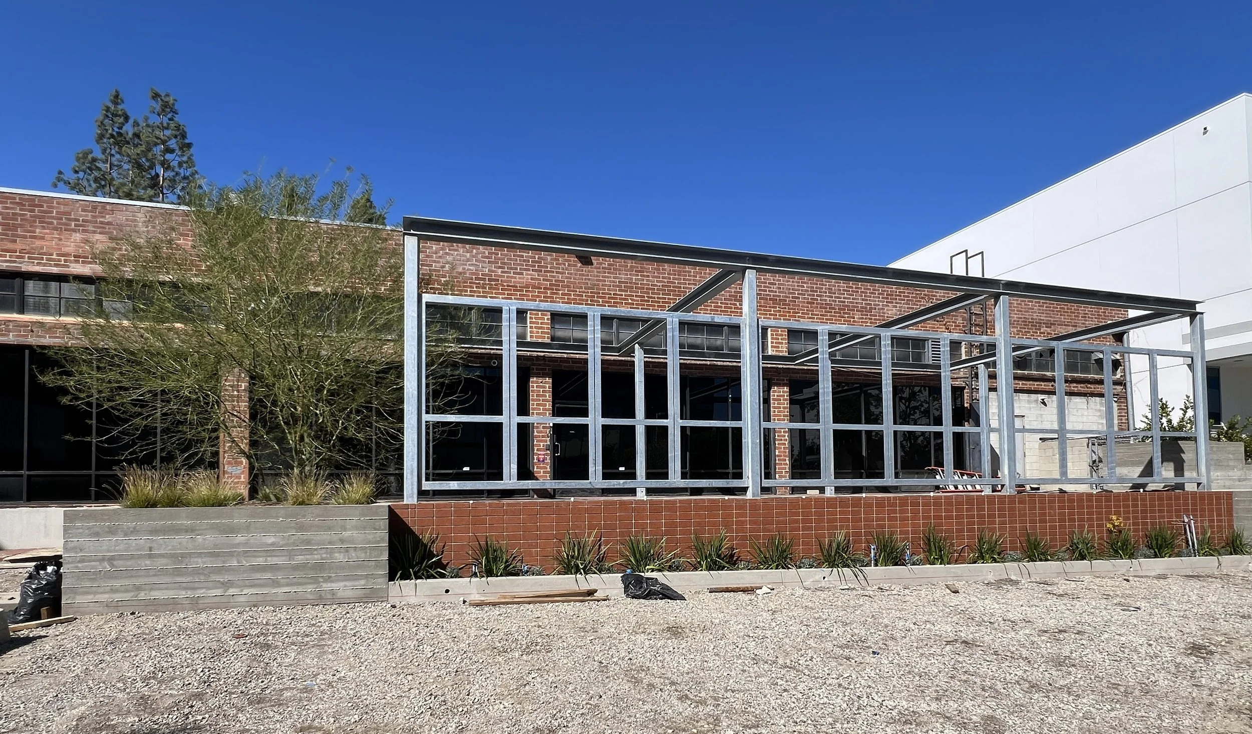 Removal of an obsolete satellite yard, in the heart of Burbank’s media district, has created the opportunity for a new courtyard space. Intended as flexible space for employees and small events, the courtyard materials borrow from the adjacent brick and concrete building, and includes a large custom shade structure and vine trellis. The plant palette blends Mediterranean and desert species with productive plants like citrus trees, making the most of limited planting areas.